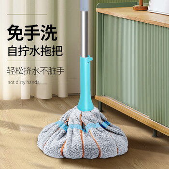 百家好世棉线拖把55cm1布拧水必卡锁免手洗家用一拖净吸水墩布拖布