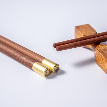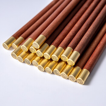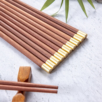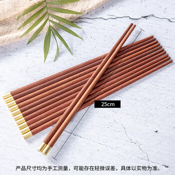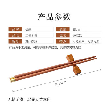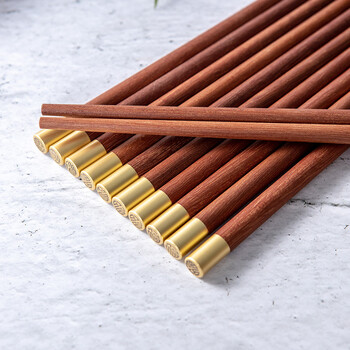 拾画 家庭红木实木家用防滑礼品餐具套装 创意铜头红檀木筷子十双装