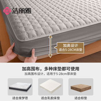 洁丽雅(Grace)抗菌夹棉床笠可水洗加厚床罩床垫保护套 深灰1.8m