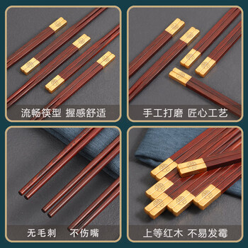 幻越酸枝木筷子5双礼盒装新中式家用金福筷节日送礼乔迁礼伴手礼盒