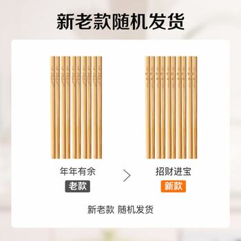 双枪天然竹筷子 无漆无蜡家用竹筷餐具套装10双装招财进宝升级款