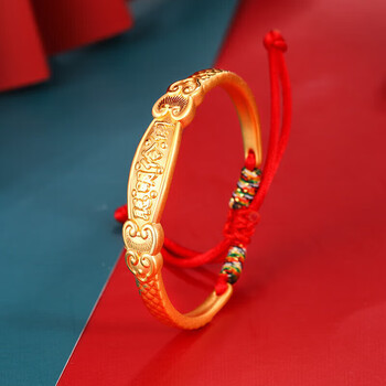 梦金园 宝宝黄金手镯足金聪明伶俐金镯子半镯本命年红绳送礼