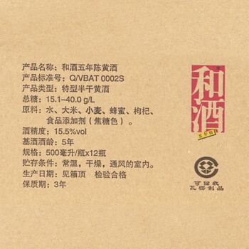 和酒 五年 半干型 海派黄酒 500ml*12瓶 整箱装 上海老酒 送礼