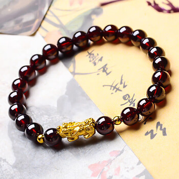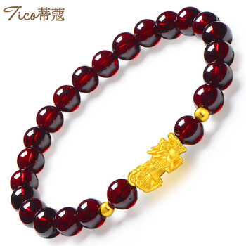 蒂蔻(Tico)足金招财貔貅黄金转运珠手链女3D硬金石榴石手串饰品生日礼物