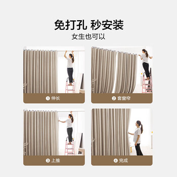 水星家纺窗帘免打孔安装卧室遮光隔音窗帘杆整套遮阳帘280宽×180高cm米色