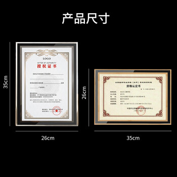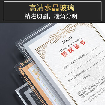 优必利 证件框相框 创意水晶相框玻璃相框营业执照框 工商税务登记证框 A4相框双边款 5053银色