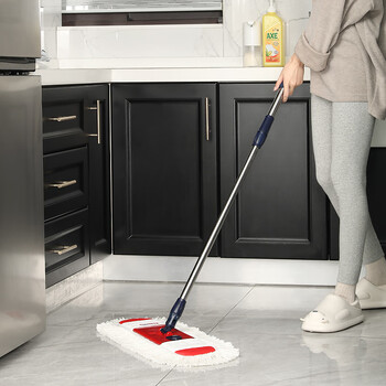 伊司达 棉线拖把 55CM不锈钢杆1.35米共2块布棉纱大号平板拖家用一拖净