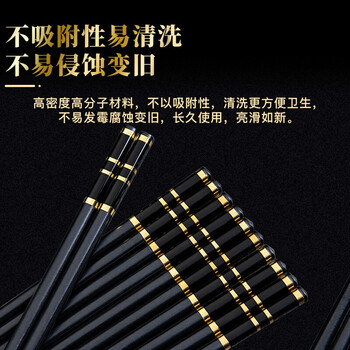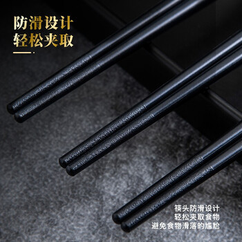 拾画 合金筷子 不锈不发霉10双装 家用酒店日式筷子 黑底金圈款27cm