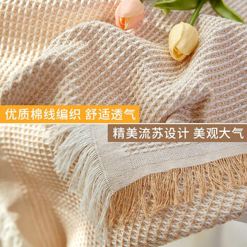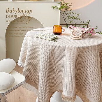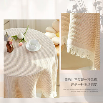 艾薇桌布布艺蕾丝餐桌布圆形方形茶几布台布书桌布90*90卡其华夫格