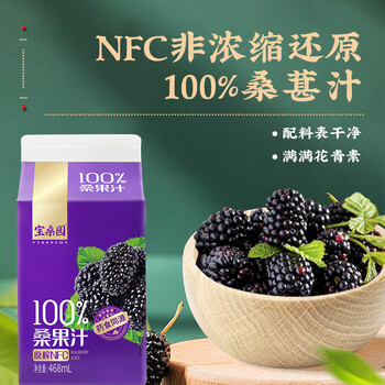 宝桑园 100%桑葚汁468ml*12盒NFC桑果汁 纯果蔬汁礼盒装