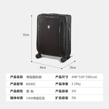 维氏(VICTORINOX)瑞士军刀沃克斯6.0旅行拉杆箱出行密码箱20吋可登机箱黑色605402