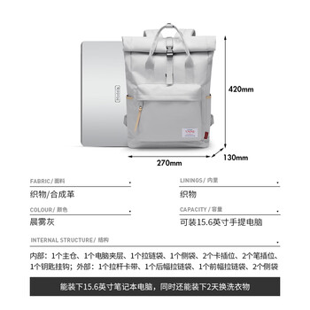 规格 SIZE : 休闲双肩背包_晨雾灰_大