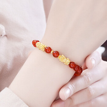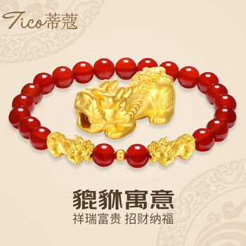 蒂蔻(Tico)招财足金貔貅黄金转运珠手链女3D硬金珠饰品红玛瑙手串生日礼物