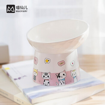 喵仙儿 猫碗陶瓷护颈防打翻猫咪粮猫食盆宠物碗狗碗食盆猫咪用品