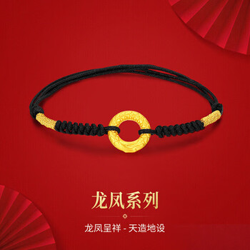 梦金园黄金转运珠龙鳞凤尾足金平安扣3D硬金情侣手链