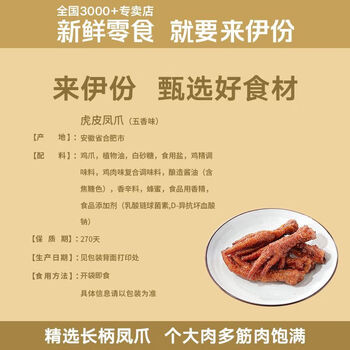 来伊份虎皮凤爪五香味125g即食鸡爪熟食卤味下酒夜宵解馋办公室休闲零食