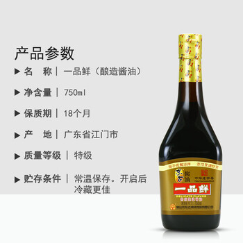东古 一品鲜酱油【特级生抽】750ml 酿造酱油 红烧味极鲜老字号