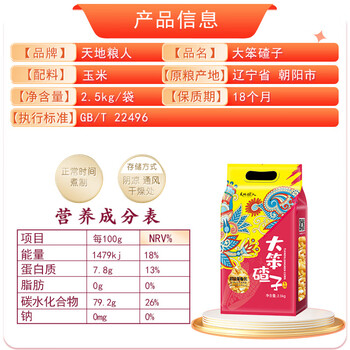 天地粮人甄制天地粮人 大笨碴子5斤东北大碴子(大粒 玉米碴 粗粮杂粮)