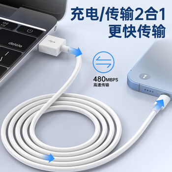 朗客【2条装】苹果数据线1米快充充电线适用iPhone14/13/12/11Pro Max/手机充电器线平板iPad Air白色