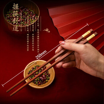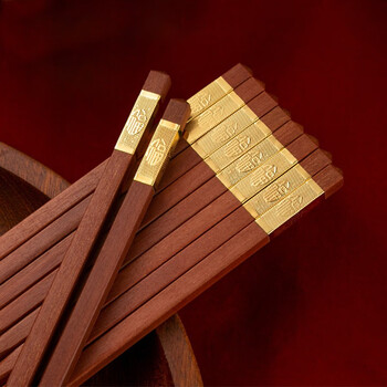 拾画高档红檀木筷 家用防滑无漆无蜡筷子 精品餐具中华筷金福款10双装