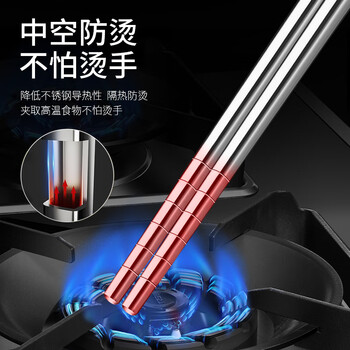 广意304不锈钢筷子防滑防烫耐摔家用家庭装金属筷 六环筷10双装GY7512