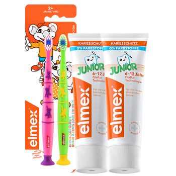 elmex6-12岁少儿牙膏50ml2支+儿童牙刷2支