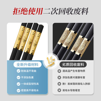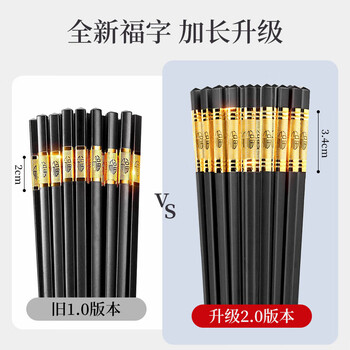 唐宗筷加长金福合金筷子10双装 抗菌家用无漆无蜡高档酒店C5416