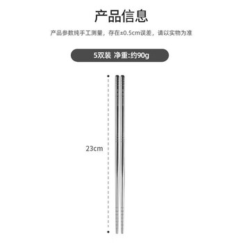 美厨(MAXCOOK)304不锈钢筷子 5双装不锈不易发霉耐高温易清洗 家用筷子MCPJ6594