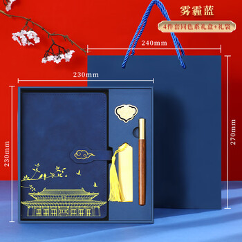 嘉然恒 国潮笔记本本子套装故宫高颜值书签款精美记事本高端商务送男女老师伴手礼品实用定制 深蓝色