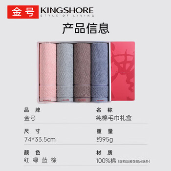 金号毛巾礼盒 A类纯棉柔软舒适吸水洗脸毛巾套装 4条装