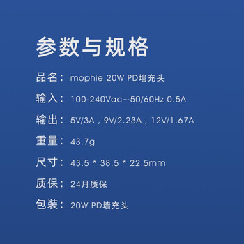 mophie充电器20w快充头苹果华为PD墙充头iPhone13手机小巧便携type-c快充充电器 黑色 PD 20w USB-C 充电器