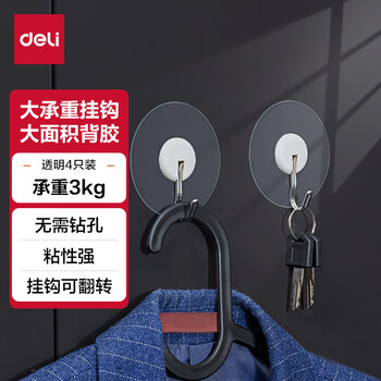 得力(deli)居家挂钩 3Kg强力承载 圆形带无痕背胶4只/卡 白色19374