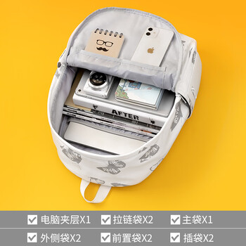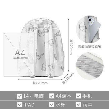 Mr.ace Homme发光蝴蝶双肩包女大学生书包高级感休闲大容量电脑背包 白色