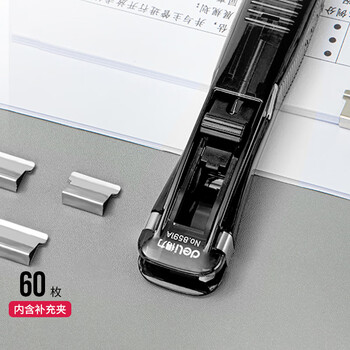 得力(deli)【超级爆款】办公装订推夹器套装(推夹器 60枚补充夹) 可夹纸张数40张文件 透明黑33183