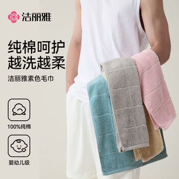 洁丽雅纯棉毛巾7A抗菌90克独立装 男女士家用不易掉毛洗脸洗澡加厚面巾