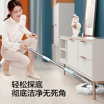 尚奇旋转拖把钢盘38cm杆长130cm2头加厚拖布大滚轮A65蓝双驱动免手洗
