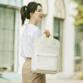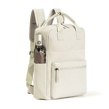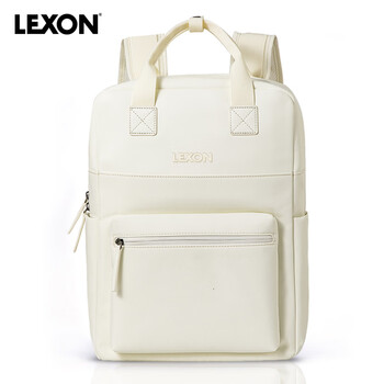 乐上(LEXON)双肩包男15英寸笔记本电脑包防泼水背包女休闲学生情侣书包米白色