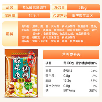 桥头地道老坛酸菜鱼调料318g 重庆水煮鱼调料酸菜鱼调料包家用调料包