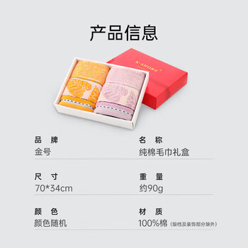 金号毛巾礼盒 A类纯棉毛巾强吸水2条装企业福利礼盒 颜色随机