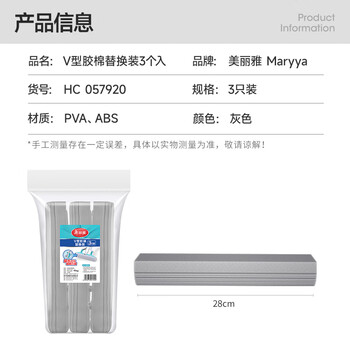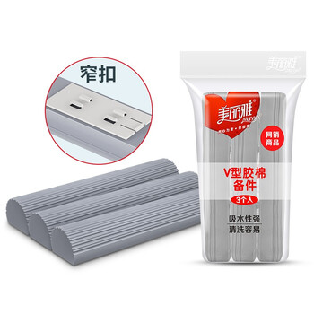 美丽雅胶棉拖把替换头 28cm3个装 窄扣 海绵拖把适用对折挤水海绵拖布
