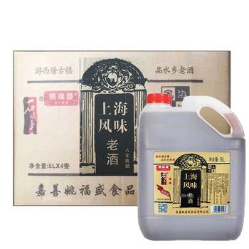 石皮弄嘉善老酒黄酒上海老酒半干型黄酒13度(八年陈)5LX4整箱装节日礼盒