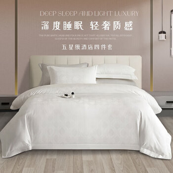 源生活 纯白色五星级酒店四件套 纯棉提花床上用品套件 1.8米床