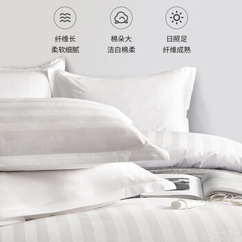 源生活 白色酒店四件套 纯棉床单被套 名宿招待所1.8米床(220*240cm)