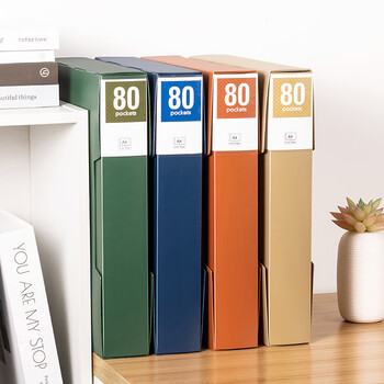 天色 A4/80页大容量资料册插页文件夹 加厚带外壳活页收纳册档案盒试卷收纳活页夹 TS-20008 深邃蓝
