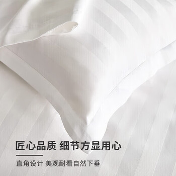 源生活 白色酒店四件套 60支星级3cm缎纹纯棉床上用品床单被套 1.5米床