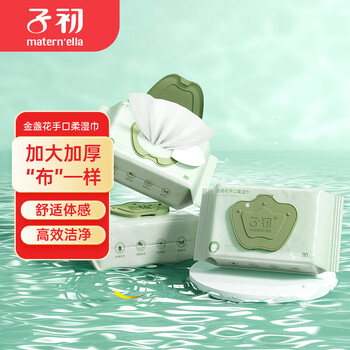 子初金盏花手口湿巾80抽*3包加大加厚湿巾草本清洁湿纸巾带盖家庭装