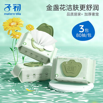 子初 金盏花手口柔湿巾 200*145mm 80抽/包*3*1