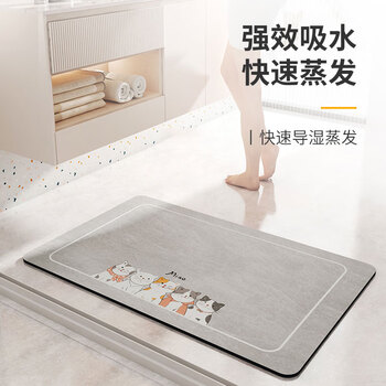 七七家浴室吸水脚垫卫生间门口防滑硅藻泥地垫厕所洗手间速干60*90cm