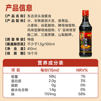 东古浓头油酱油410ml*1瓶