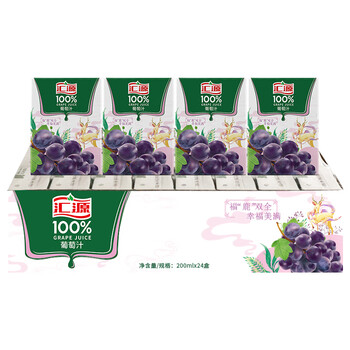 汇源 果汁 葡萄汁 100%纯果汁 200ml*24盒 整箱装 果汁饮料